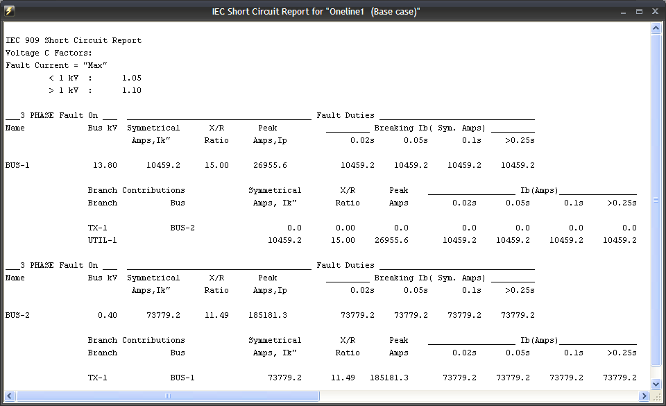 Figure 2: Example Short Circuit Report