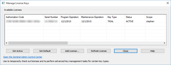 Figure 1: Manage License Keys Dialog Box