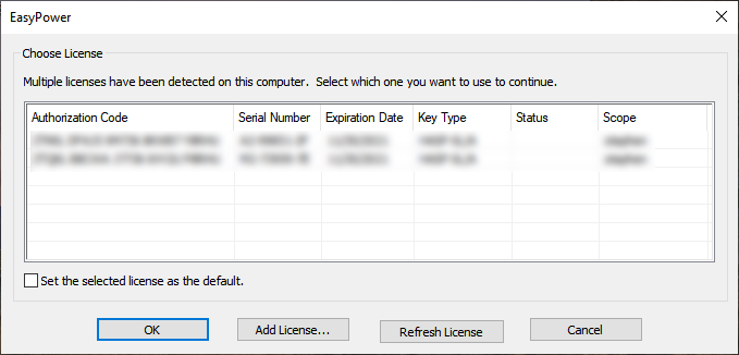 When you start EasyPower on a computer that has multiple licenses, you can select the license you want to use for the session.