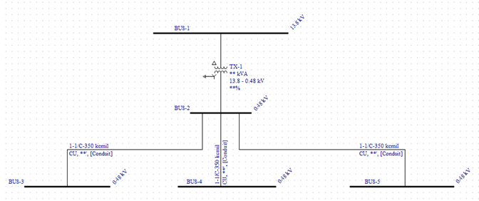 remaining leader to the middle bus (see figure above). The transformer stays red until it is connected. After it connects, you can drag the transformer symbol up so it is centered