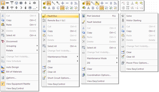 You can click right-click anywhere on the screen to display an additional context-sensitive menu. The menu changes based on where you are working in the software. Only options that are appropriate for that area are displayed. Some options may be appropriate for the area but are dimmed until a specific action is taken (for example, only after selecting an item onscreen).