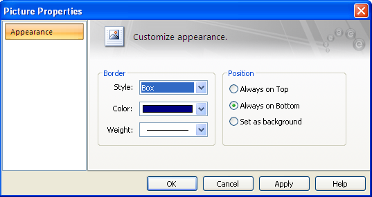 - Always on Bottom: The picture appears in the background, with other elements on top of it.