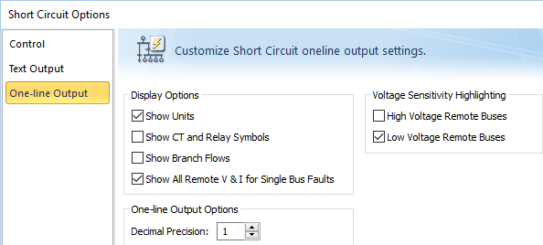 Note: You can also select Show All Remote V & I for Single Bus Faults from the One-line Output tab Short Circuit Options dialog box.