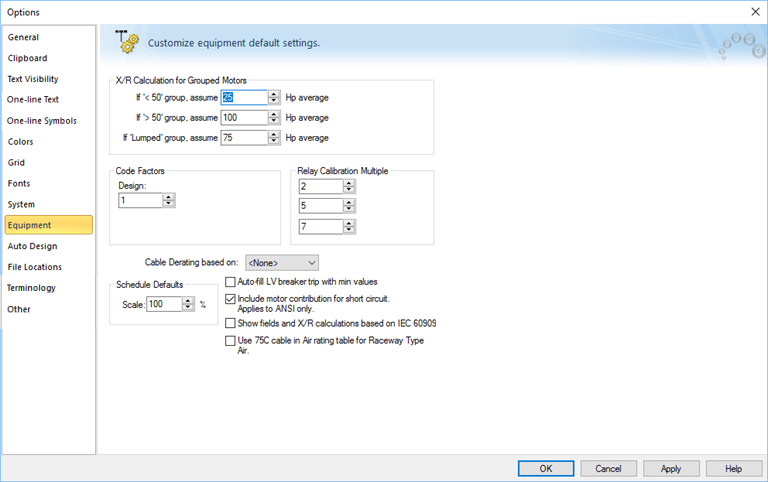 For the purpose of X/R calculation, EasyPower enables you to set the average Hp for ANSI codes <50 group, >50 group, and Lumped group as chosen in the Motor Data dialog box.