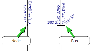 If selected, when auto creating buses (see next item below) during addition of equipment to other equipment not terminated with a bus, the newly created bus between the two equipment is shown as a node (dot) if this setting is enabled. See picture below.
