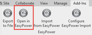 To do this, from the Add-in tab, click Open in EasyPower.