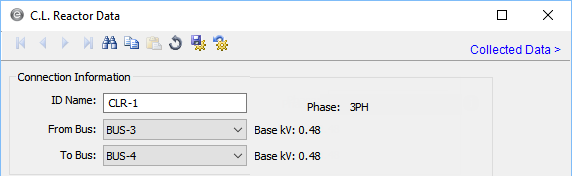 Uniquely identifies the equipment item. The program automatically assigns a name, but you can change it, if needed. The name can be up to 30 characters long. Special characters such as &!%^\,? cannot be used in the name. For current limiting reactors, the program automatically assigns the names CLR-1, CLR-2, CLR-3, and so on. |