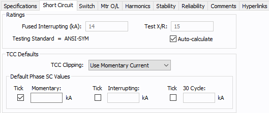 Data entered in this section is used to place tick marks representing short circuit values on the TCC plot. |