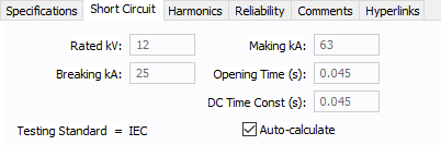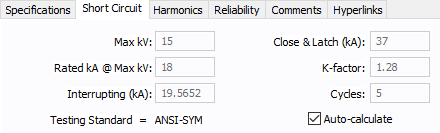 Fills in computed values based on the device library entry for Mfr, Type, Style and the base kV. You can override these values by clearing the checkbox and typing in different numbers. |