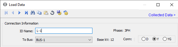 This is the ID name of the bus to which the equipment is connected. The base kV of the bus is indicated on the right. The base kV displays the highest voltage between the current carrying conductors. For 3-phase or line-to-line connected single-phase equipment, the base kV is the line-to-line (LL) voltage. For line-to-neutral (LN) connected single-phase equipment, the base kV is the line-to-neutral voltage. |
