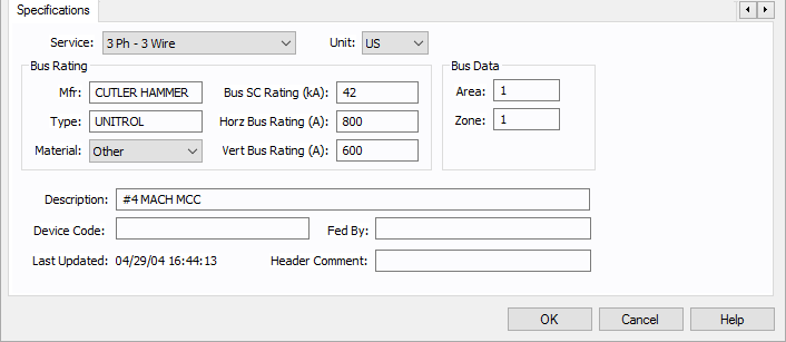 Use this field to indicate the transformer or the power supply source feeding the MCC.