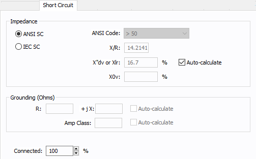 When this option is selected, IEC short circuit calculations are used. See IEC Impedance and X/R Calculations. If the motor has an adjustable frequency drive, you can also select the option for a regenerative or non-regenerative drive. Grouped motors with an adjustable frequency drive are non-regenerative motors and do not have contribution regardless of the motor type. |