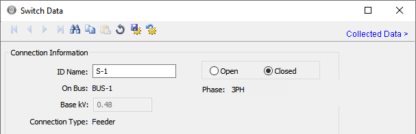 Normal state of the switch. If Open, the one-line displays "OPEN" next to the switch symbol. If Closed, the one-line symbol does not show the "OPEN" tag. |