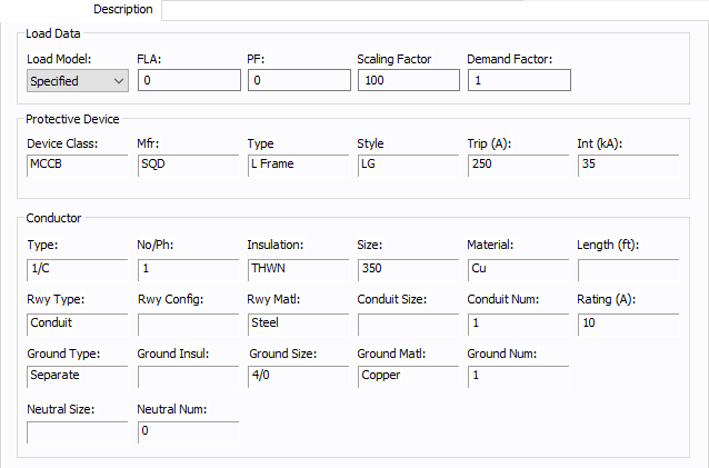 Each load can be varied by applying a different scaling factor. This lets you model the actual panel or lumped load on a bus, then study different loading conditions. This allows quick “what if” studies and prevents errors that occur from data entry.