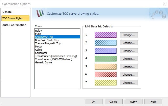 Figure 1: TCC Curves Style Tab of Coordination Options Dialog Box