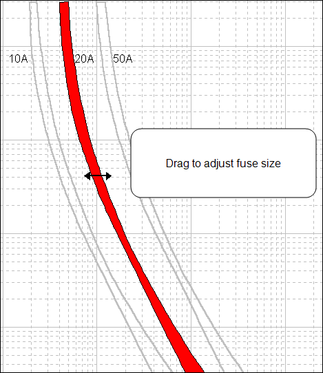Dragging the TCC curve changes different information for different devices. For example, dragging a fuse on a TCC curve changes the size of the fuse, as shown below.