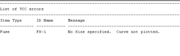 Plot TCC. This causes the TCC curve of the selected items to appear next to a one-line diagram of the selected items. If there is not sufficient data to plot an item, the following message appears:
