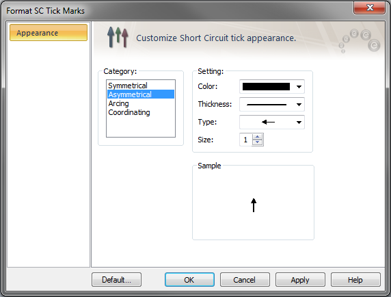 To format a short circuit tick mark to the desired shape, color and size, click the arrow below