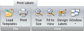 When the label Print Preview window is active, the Print Labels tab is displayed.