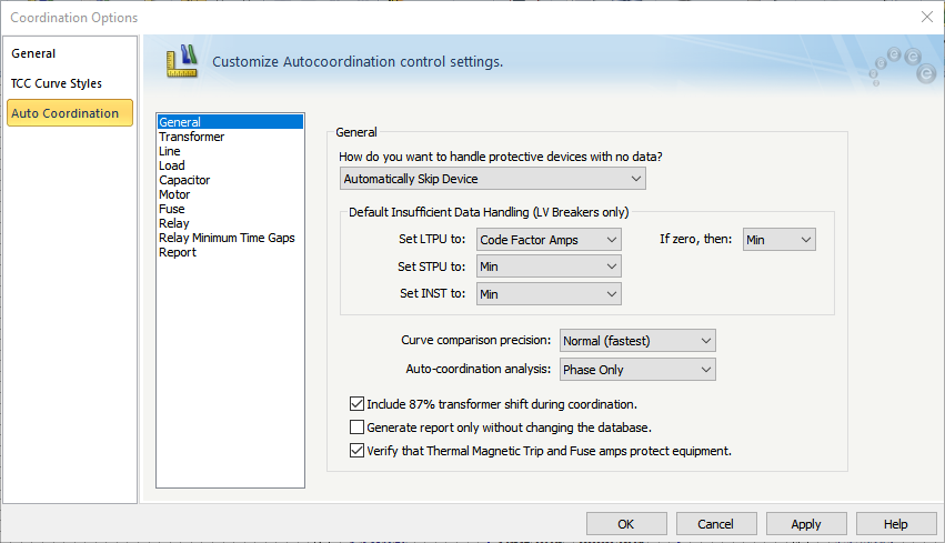 Note: This tab is only available if you have the SmartPDC™ (auto-coordination) feature and are using the ANSI short circuit calculation method.