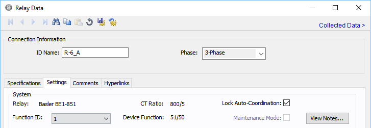 For relays, auto coordination locking can be selected for each device function. On the relay Settings tab, select the check box in the Lock Auto Coordination in the System area of the dialog box for the function where you do not want auto coordination to change the settings.