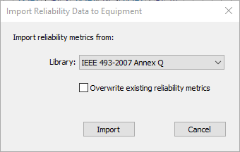 - Select the library from which you want to import the reliability data. Typically, this is IEEE 493-2007 Annex Q, but you can select a custom library if you have one.