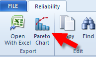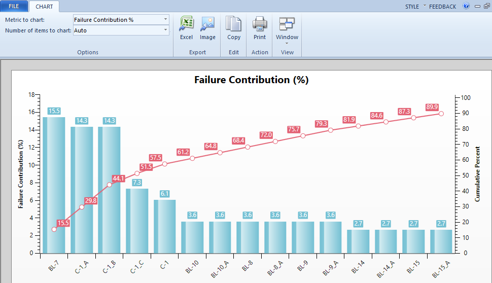 After you run a reliability evaluation, you can create Pareto charts that display your system reliability in a graphic format. Click Pareto Chart to create the chart.
