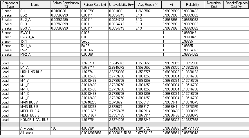 - If you know the cost of downtime for the entire network, or individual load branches, the program provides this result on an annualized basis.