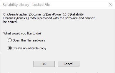 This file is read-only. Each time you open EasyPower, the program checks to make sure the most current version of the library is copied to your library location.