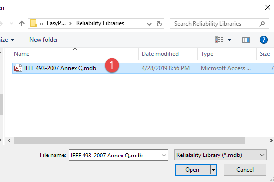 - Select the IEEE 493-2007 Annex Q.mdb file, and then click Open.