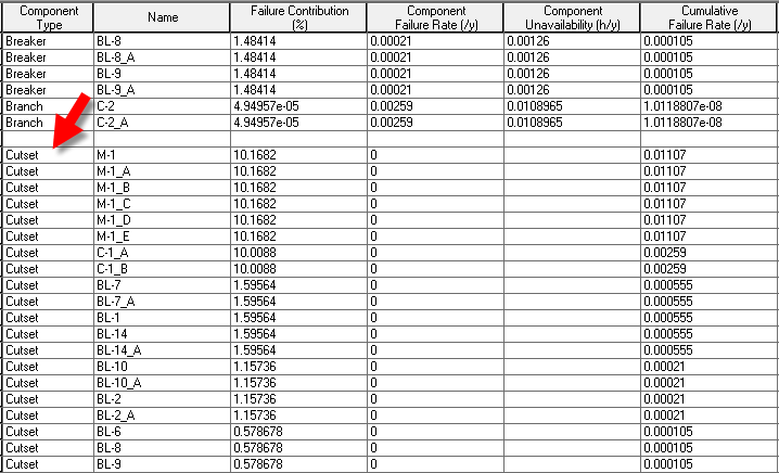 You can show the minimal cut-sets after you perform a reliability evaluation. A cut-set is a set of components whose failure alone causes a system failure. You can review the cut-set information to see more detail as to how EasyPower calculated the reliability analysis.