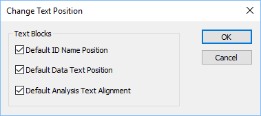 There is a new option to change your text position if you have moved your text position on one or more items and want to set them back to the default positions. This is available to reset the ID name, data text, or analysis text. On the Database Edit menu, the Text Visibility button has been renamed to Text, and a new option has been added to Set Selected Text Position.