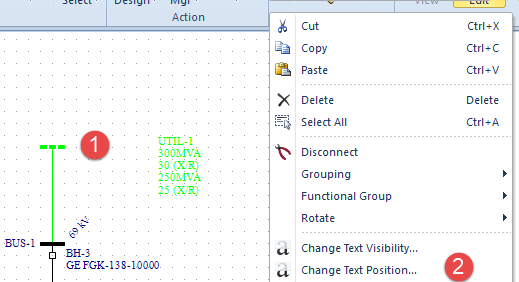 This option is also available after you select items on the one-line and then right-click on a blank area and click Change Text Position.