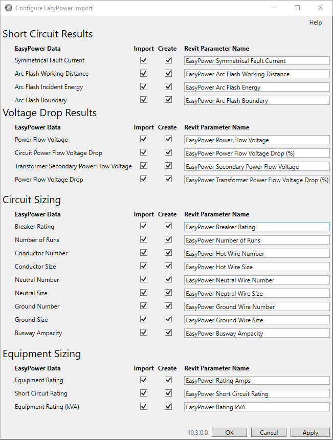 - Use the Configure Import option in the Revit Integrator add-in to control which Revit parameters are updated by the import and to create new Revit parameters in which to store the EasyPower data.