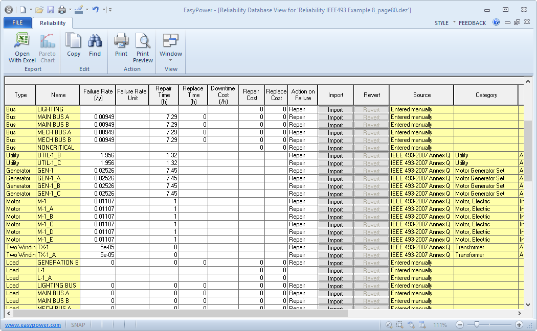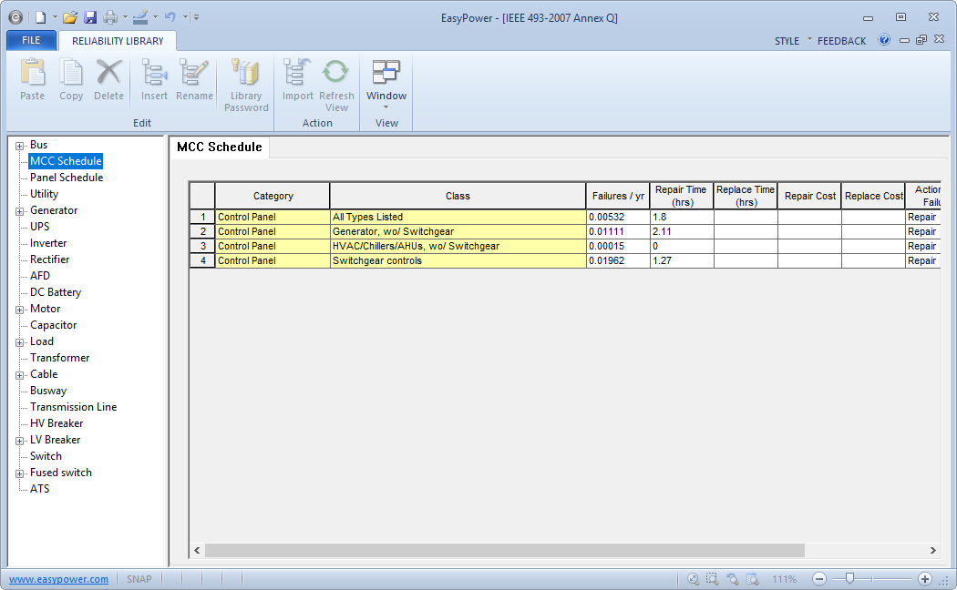 - There is a new reliability library that contains empirical data from Annex Q of the IEEE 493 standard. You can import this data into your one-line to automatically populate your equipment and devices with reliability data. This library is read-only.