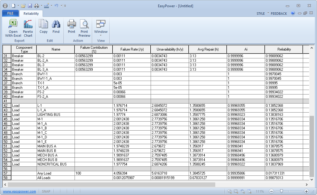 Reliability provides the tools to quantify the reliability, availability, and cost impact of downtime for electrical power system networks. The following are some of the features and benefits of this module.