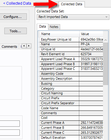 - Information you import from Revit is shown on the Collected Data tab of the individual equipment items or devices.