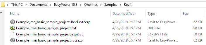 You can find these files in C:\Users\{username}\Documents\EasyPower 10.3\Onelines\Samples\Revit.
