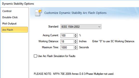 Figure 34: Dynamic Stability Options - IEEE 1584-2002 Standard Selected