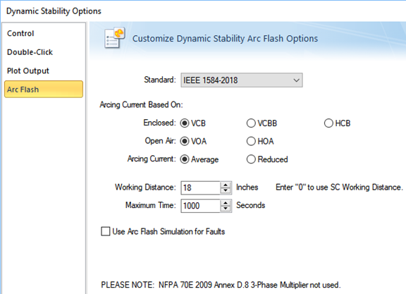 Figure 33: Dynamic Stability Options - IEEE 1584-2018 Standard Selected