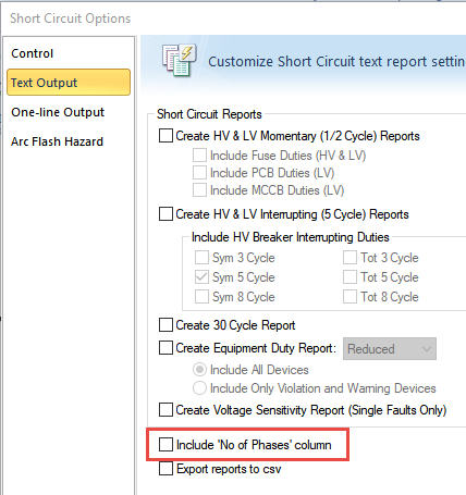 Figure 15: Include Number of Phases Column in Short Circuit Reports