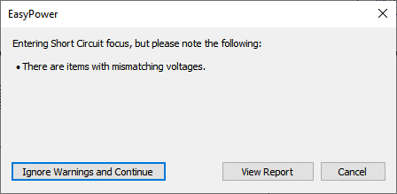 When EasyPower displays an error report (such as when you attempt to open the Short Circuit focus with incomplete data), you can now easily edit the item in one of three ways: