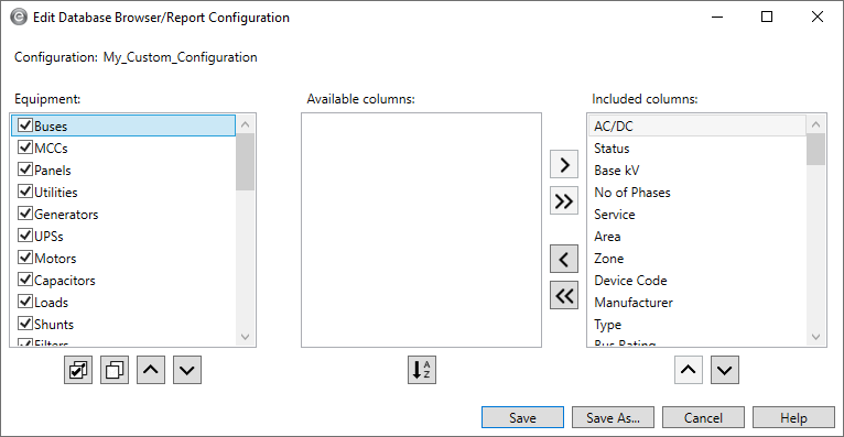 This gives you the ability to see the equipment you want and the data you want displayed for that equipment in the order you want it displayed. See Database Browser and Report Configurations for more information.