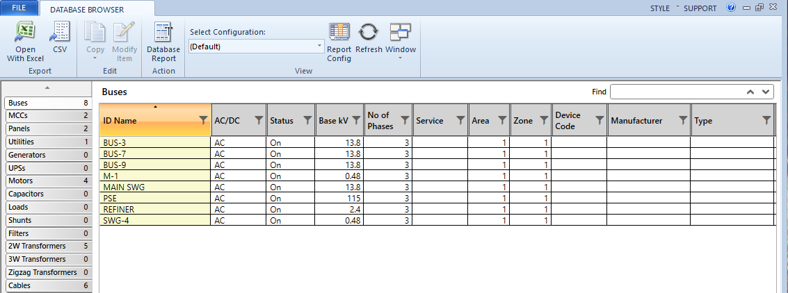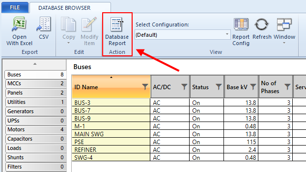 The Database Browser and Database Report, now accessible in the main ribbon, include new functionality and a simplified default display of essential system information in a tabular format.