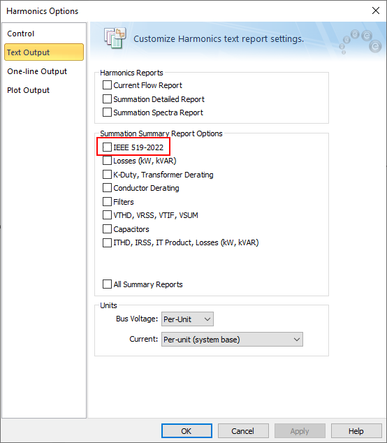 The Harmonics reports are updated in accordance with the revised limits in the latest version of IEEE 519.