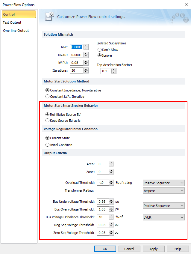 Power Flow Options - Control Tab