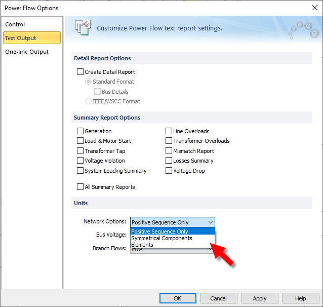 Power Flow Options - Text Output