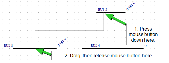 Place buses in the drawing as shown below by clicking the left mouse button and dragging each bus to the one-line.