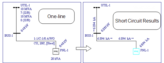 If you are an advanced EasyPower user, you can add a cable, a bus and a utility as shown in Performing Short Circuit Calculations on a Panel and have EasyPower perform short circuit, power flow and harmonics calculations on this small system.