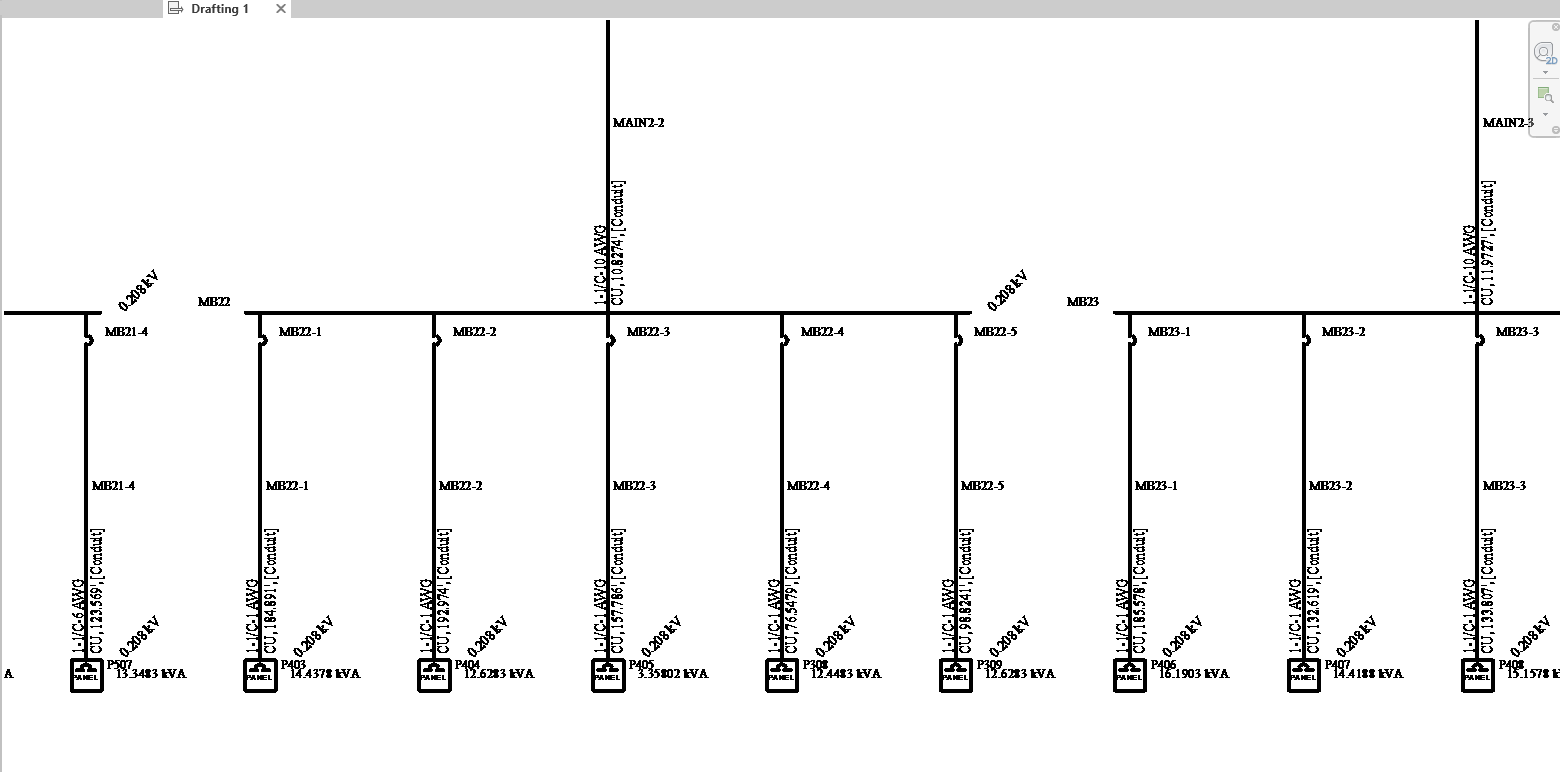 The one-line drawing is displayed in Revit. You can zoom in to view the one-line details.